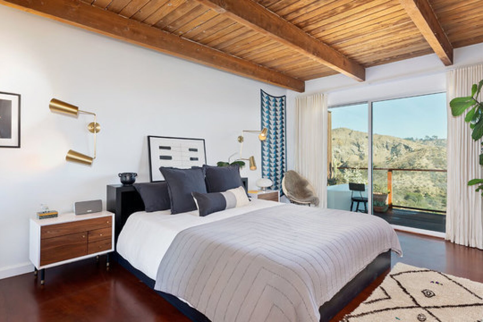 Banks of windows, clerestories and sliding glass doors in the nearly 1,500-square-foot home open to views of the hills of Griffith Park, the cityscape and nearby mountains.